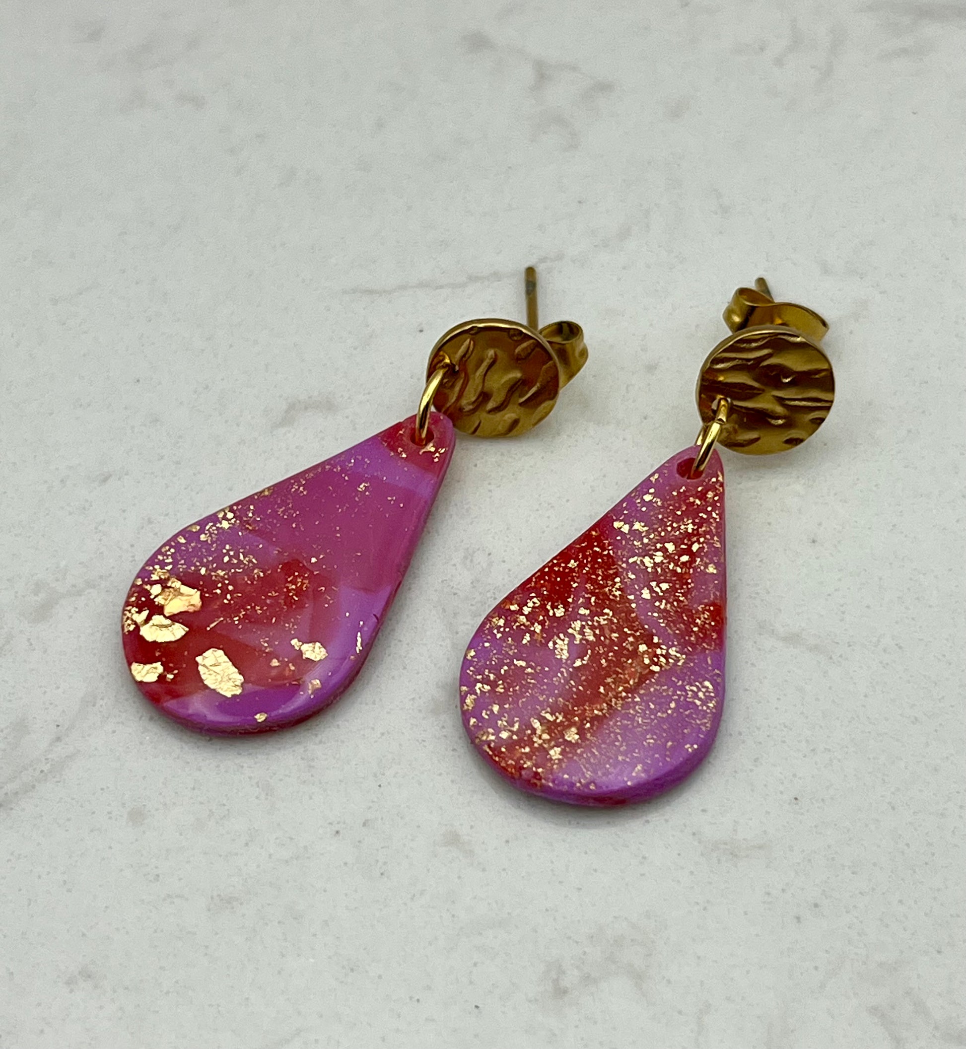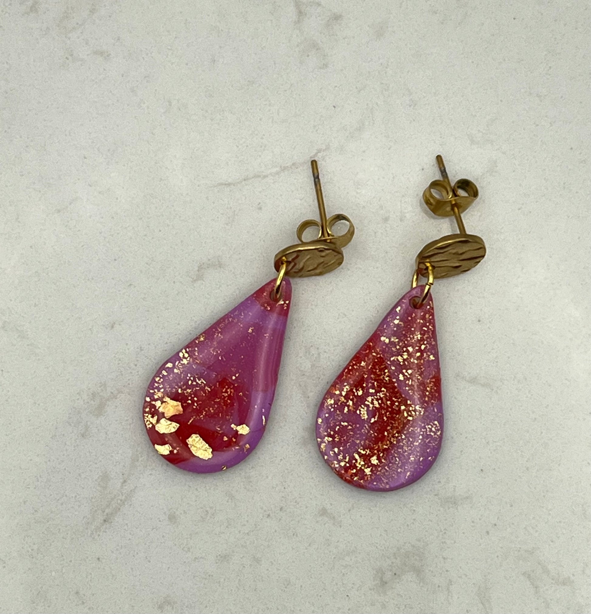 Boucles d’oreilles en acier inoxydable et pâte polymère.